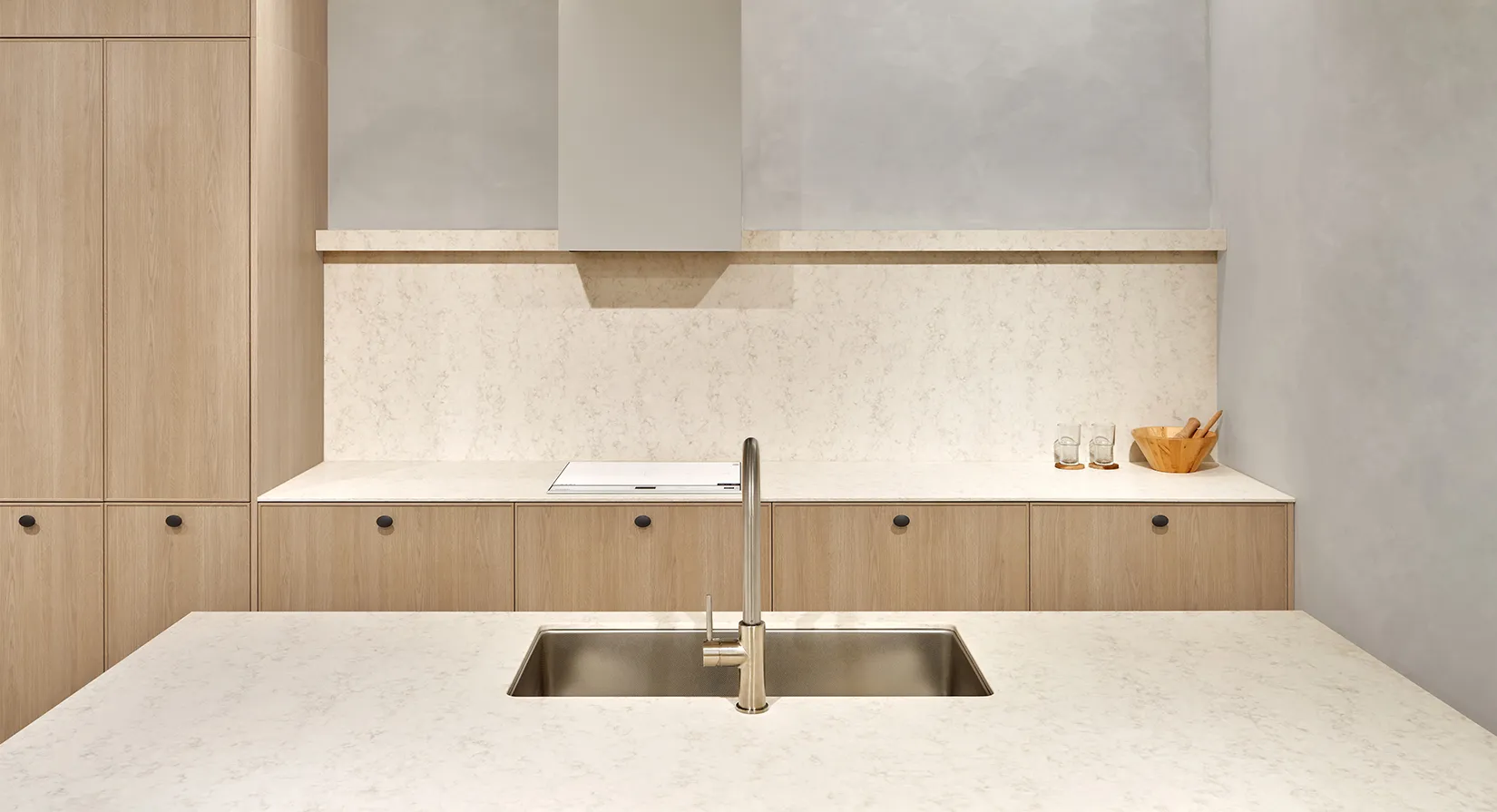 HanStone® is known for reliable colour and pattern control, helping create a more predictable finished result from slab to slab. That consistency can be especially valuable in larger projects or spaces where visual continuity matters.