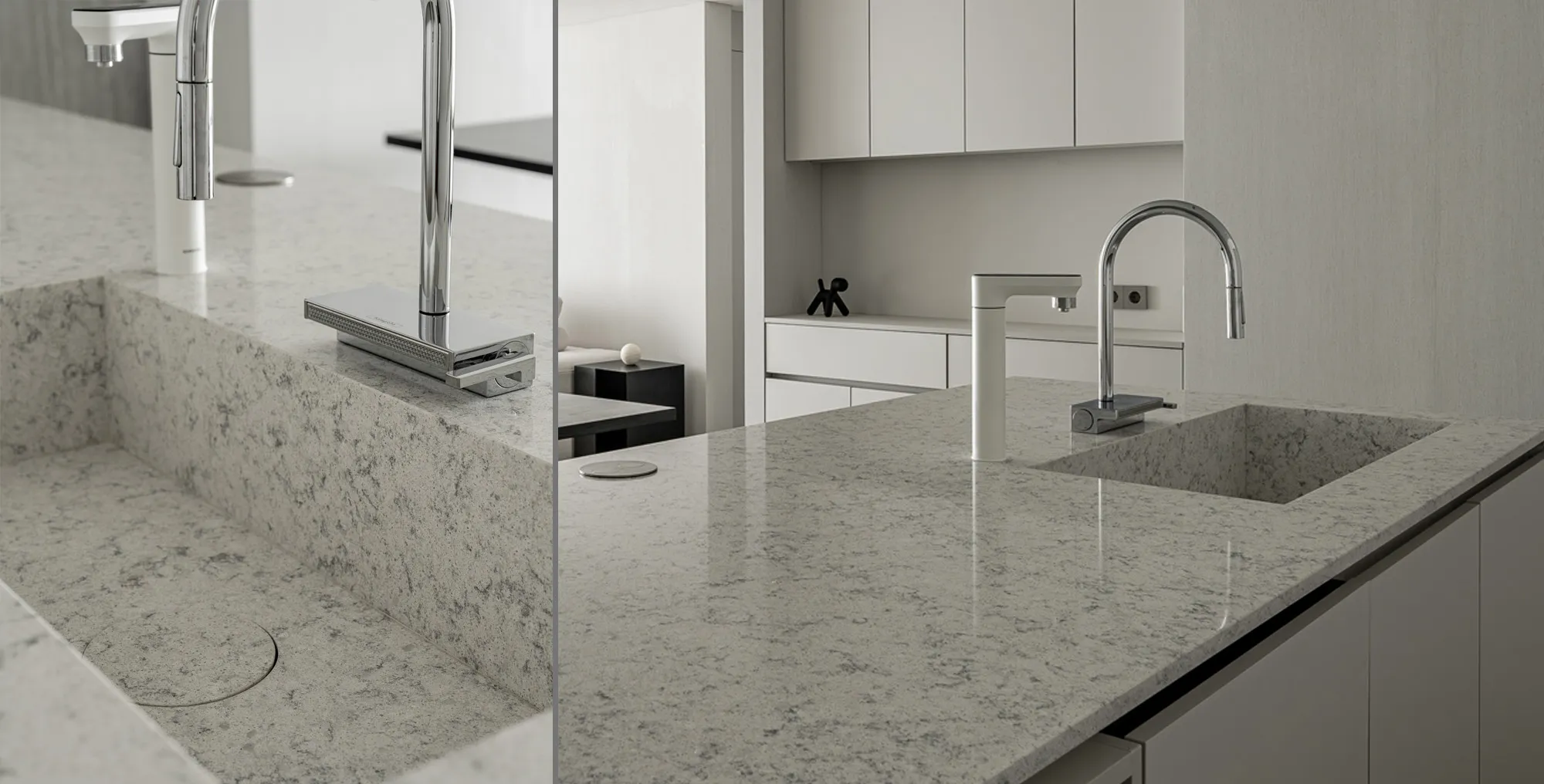 HanStone® offers a broad range of colours and patterns inspired by the look of natural stone. Its designs work well across many interior styles, from understated contemporary spaces to more classic residential settings. This makes it a flexible option for clients who want visual variety without moving into a highly specialized brand direction.